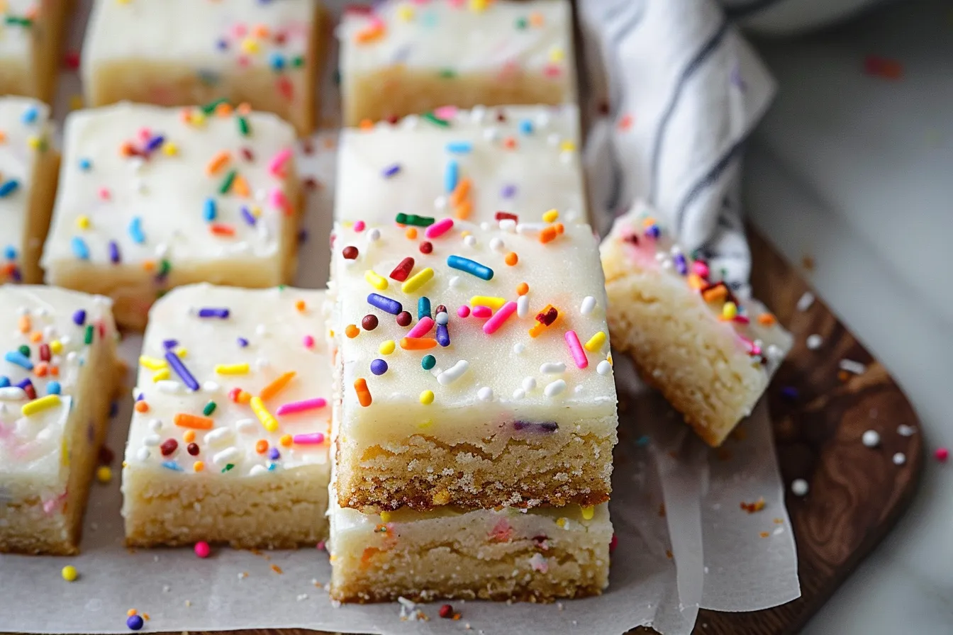 Got questions about making these Birthday Sugar Cookie Bars? I’ve anticipated some of the most common queries and provided detailed answers to help you bake with confidence.