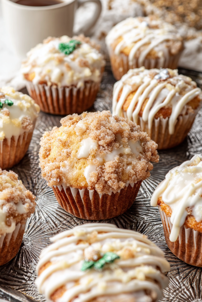 Make-Ahead Strategy: Bake muffins the night before and store at room temperature. Prepare the glaze the morning of serving and drizzle just before guests arrive. You can also prepare the streusel topping up to 3 days ahead and store refrigerated.