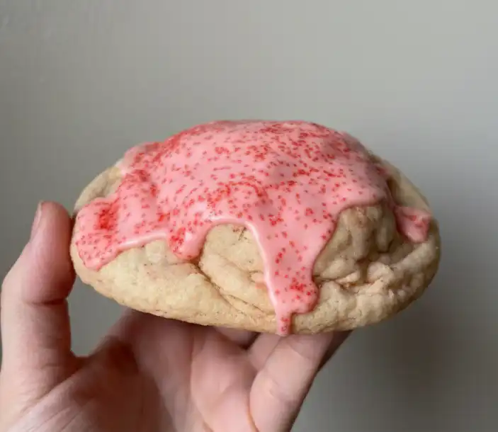 This recipe takes stuffed cookies to new levels. Inspired by the bakery-style cookies of New York—think thick, chewy centers with crisp edges—plus the nostalgic fun of Pop-Tarts and pie bars, these cookies are a textural and flavorful knockout. You get rich cookie dough, a surprise cherry swirl, and a sprinkle-glazed finish all in one bite.