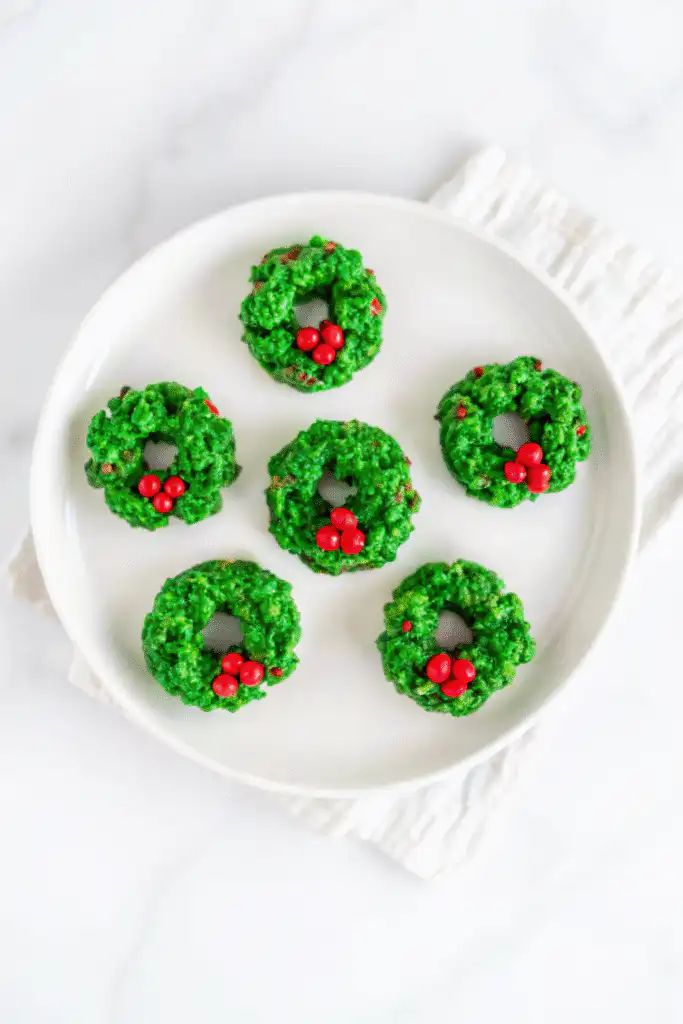 These No-Bake Christmas Wreath Cookies are the ultimate quick and festive treat. Made with buttery marshmallow, crisp cornflakes, and classic red candy ‘holly berries,’ they come together in just 15 minutes—no oven required! Sofie’s tested version delivers the perfect chewy-crunchy texture, vibrant color, and nostalgic holiday flavor that makes them a timeless favorite.