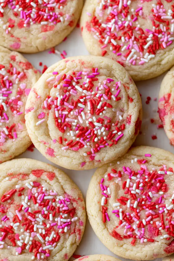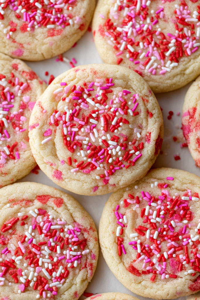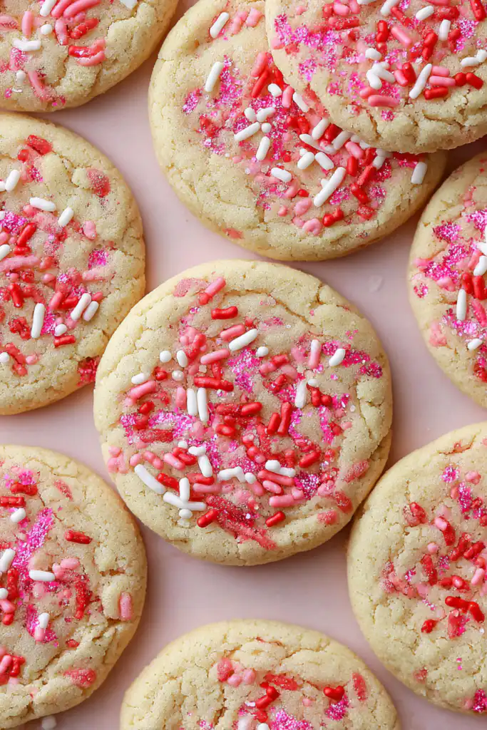 Preheat your oven to 350°F. Scoop 2-tablespoon portions and roll the tops in the remaining ¼ cup of sprinkles. Space them 2 inches apart on your cookie sheet. Bake for 8–9 minutes. The edges should be set, but the centers should still look slightly “soft.” They will finish setting on the hot pan.