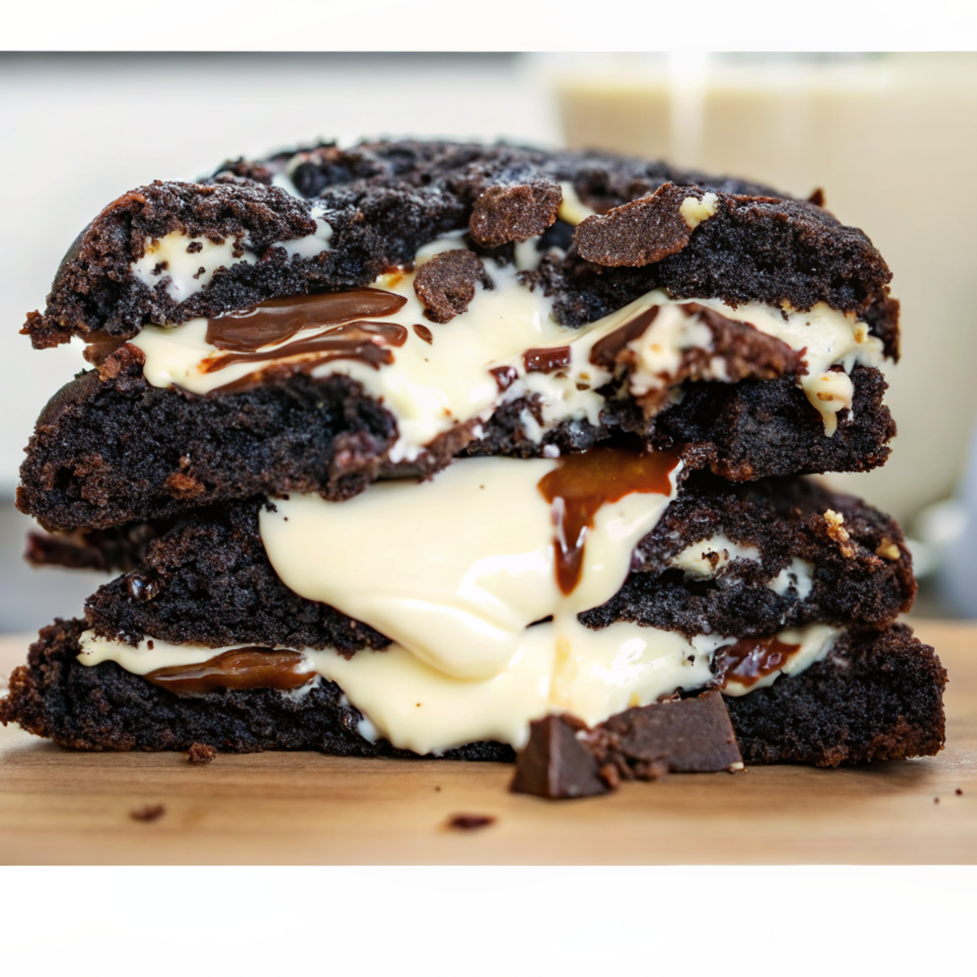 The combination of black cocoa and Oreo crumbs gives these cookies a deep, almost brownie-like chocolate flavor, while white chocolate chips add pockets of creamy sweetness. Every bite is a balance of crunchy and gooey, bitter and sweet—making them perfect for Oreo lovers.