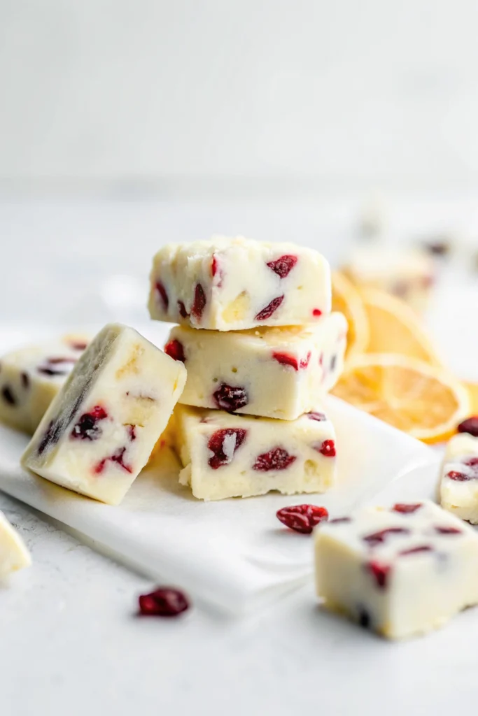 I don’t recommend using fresh cranberries for this recipe as their high water content can alter the fudge’s texture and setting. Dried cranberries provide the perfect tartness and chewiness without adding excess moisture. If you want a fresh cranberry flavor, you could consider adding a very small amount of finely minced fresh cranberries, but be aware it might impact the fudge’s stability.