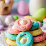 These Easter Blossom Cookies are soft, buttery sugar cookies rolled in pastel sanding sugar and topped with a classic Hershey Hug. Lightly crisp on the outside, tender on the inside, and finished with a swirl of chocolate, they’re festive, colorful, and perfect for Easter celebrations.