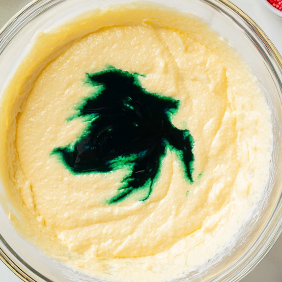 3. Add Flavor and Color: Pour in the vanilla extract and add the green food coloring. Start with about 5-8 drops of liquid color, then beat until the color is evenly distributed. Adjust as needed until you achieve a vibrant, “Grinchy” green.
