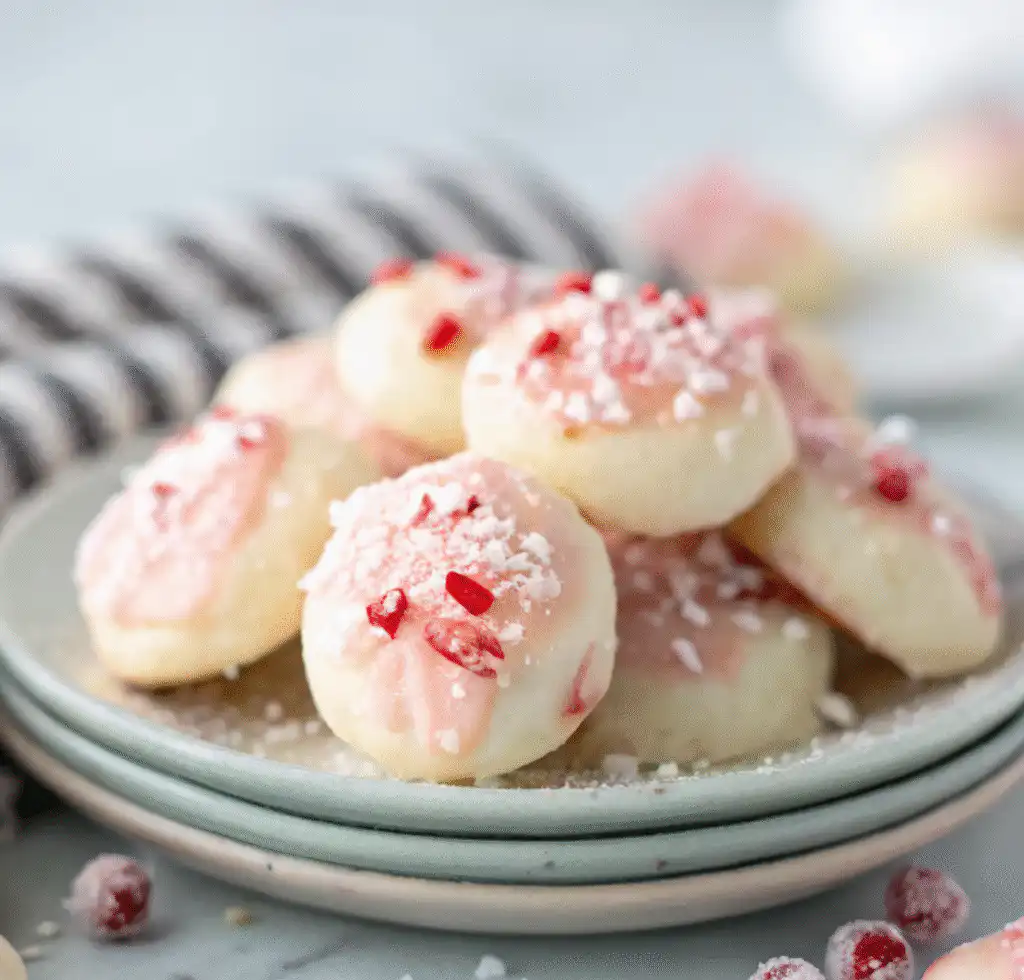 Delicate, buttery, and perfectly pepperminty — these Peppermint Meltaways live up to their name! A Sweet Craft Recipes holiday favorite, these cookies literally dissolve on your tongue with a cool peppermint finish. Topped with creamy peppermint icing and crushed candy canes, they’re festive, elegant, and utterly irresistible. Tested 9+ times by Sophie for flawless, melt-in-your-mouth perfection.