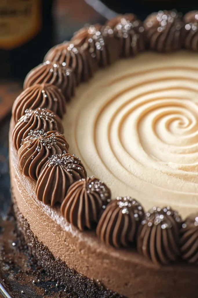 Serve this cheesecake chilled. Because it is so rich, small slices are recommended. It pairs exceptionally well with a cup of strong Irish coffee or a glass of the remaining Guinness you didn’t use in the recipe. For an extra touch of elegance, you can garnish the whipped cream swirls with a light dusting of cocoa powder or some chocolate-covered espresso beans.