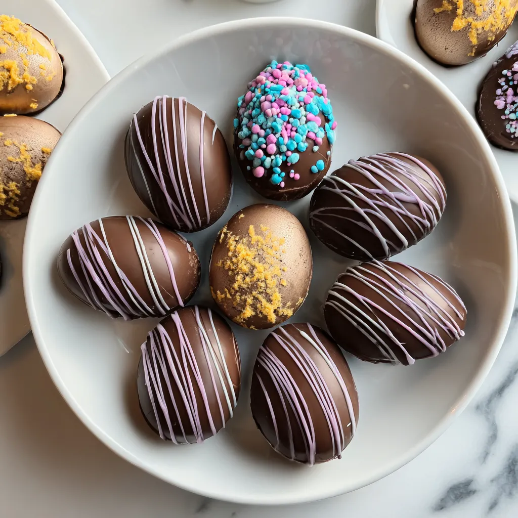These eggs are quite rich, so they are best served as a standalone treat or as part of a larger dessert platter. I love placing them in colorful paper cupcake liners to make them easy for guests to grab without getting chocolate on their fingers. They also look stunning nestled into a bed of edible “Easter grass” or shredded coconut dyed with green food coloring. For a sophisticated pairing, serve them alongside fresh strawberries or a glass of cold milk.