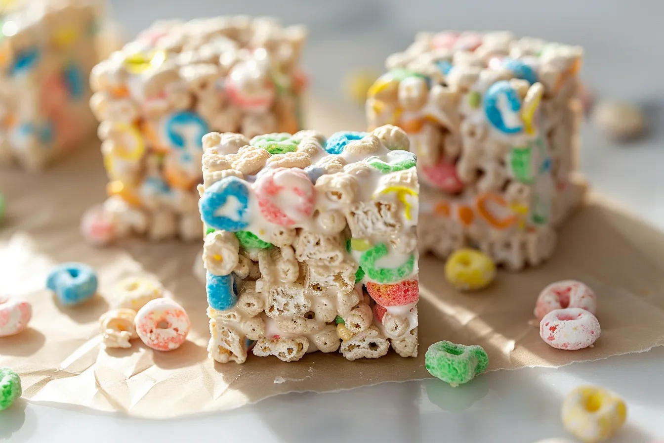 A fun and colorful dessert recipe for Lucky Charms treats that is perfect for any occasion