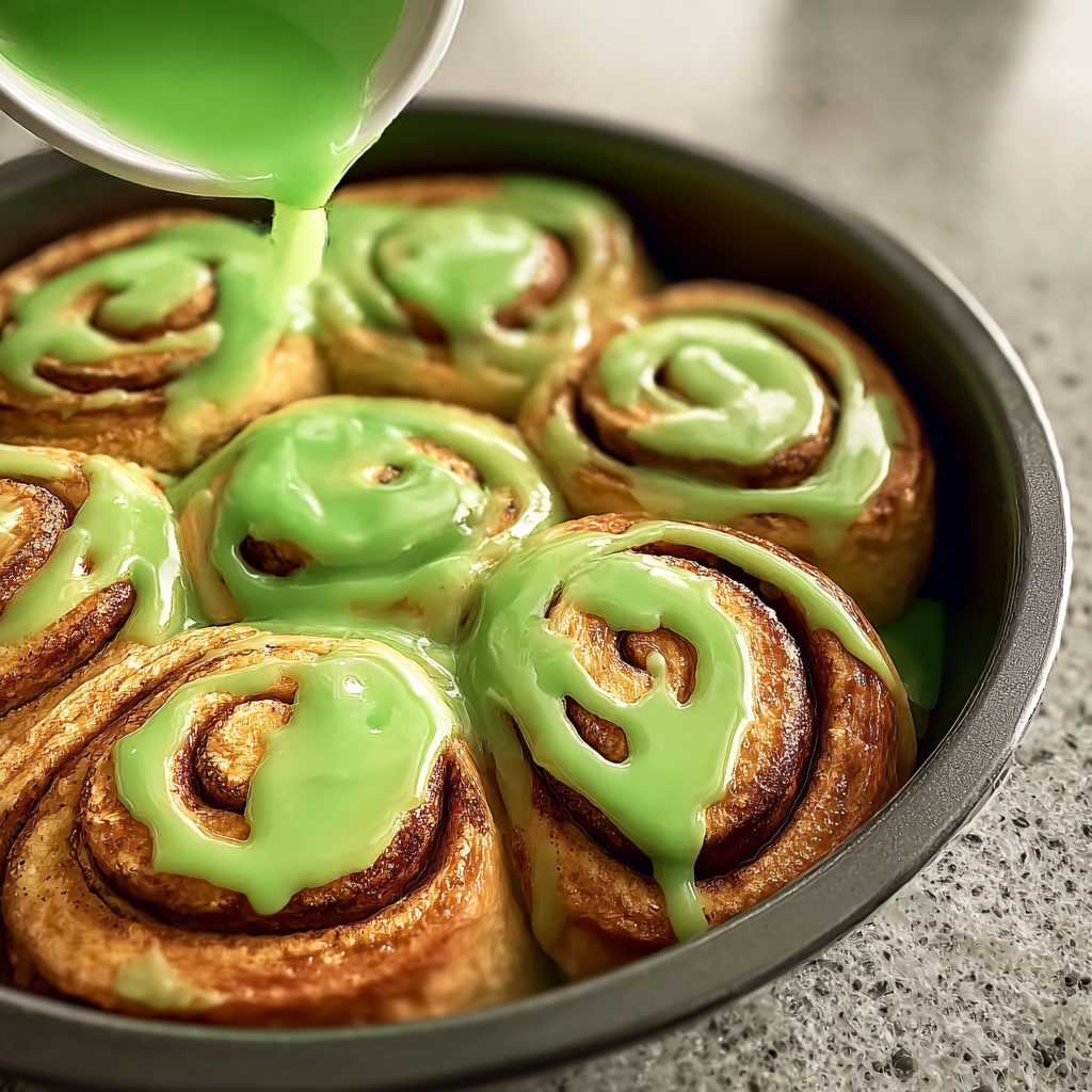 Serve these rolls while they are still slightly warm for the best experience. They look stunning when placed on a white ceramic platter, which makes the emerald green icing pop. If you are serving them to children, consider putting each roll in a festive green cupcake liner for easy, mess-free handling. A cold glass of milk or a hot cup of tea provides the perfect beverage balance to the sweetness of the icing.