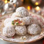 These cookies are everything you love about the original—rich, buttery, and coated in a thick layer of “snowy” powdered sugar but with the added joy of festive sprinkles. They are the perfect treat for birthday parties, holiday cookie trays, or just a Tuesday afternoon when you need a little bit of whimsy in your life.