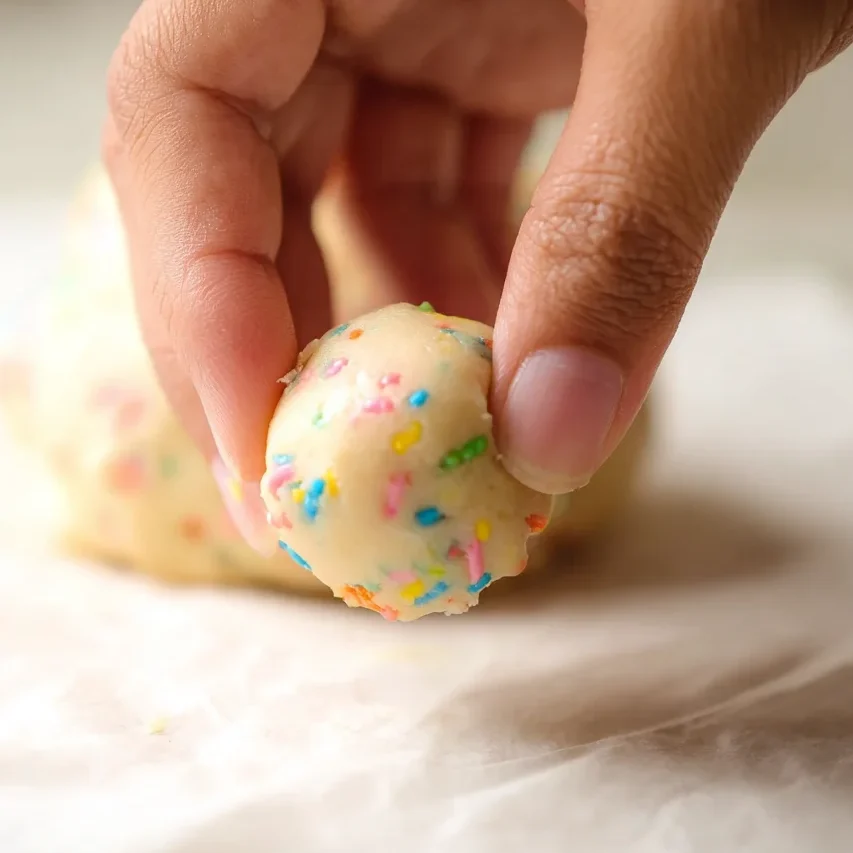 Gently fold in your sprinkles. Once they are distributed, use your hands to gently knead the dough into a smooth ball. It should feel soft but not overly sticky.