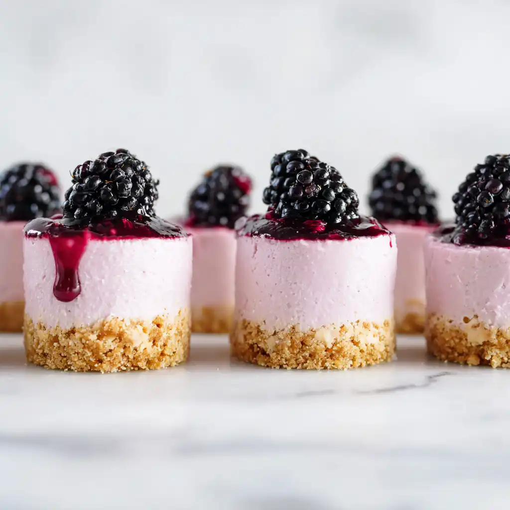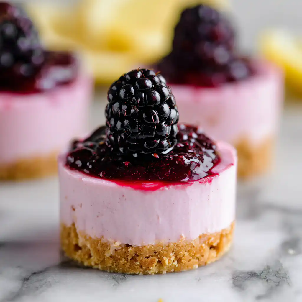 Indulge in these creamy, vibrant No Bake Mini Blackberry Cheesecakes. Perfect for summer parties, these treats combine a buttery graham cracker crust with a luscious berry-infused filling and a fresh fruit coulis.