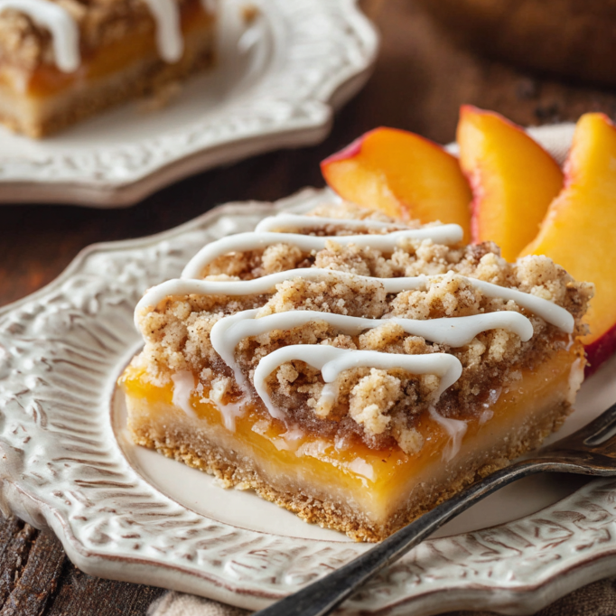 These bars capture everything we love about a deep-dish fruit pie but eliminate the stress of chilling pie dough or achieving the perfect lattice. Instead, we use a press-in shortbread base that provides a sturdy, buttery foundation for a heap of juicy, cinnamon-spiced peaches. Topped with a crunchy oat crumble and a silky vanilla glaze, these bars are the quintessential summer treat. Whether you are heading to a backyard barbecue, a picnic in the park, or simply want a sweet treat with your morning coffee, these bars are the answer.