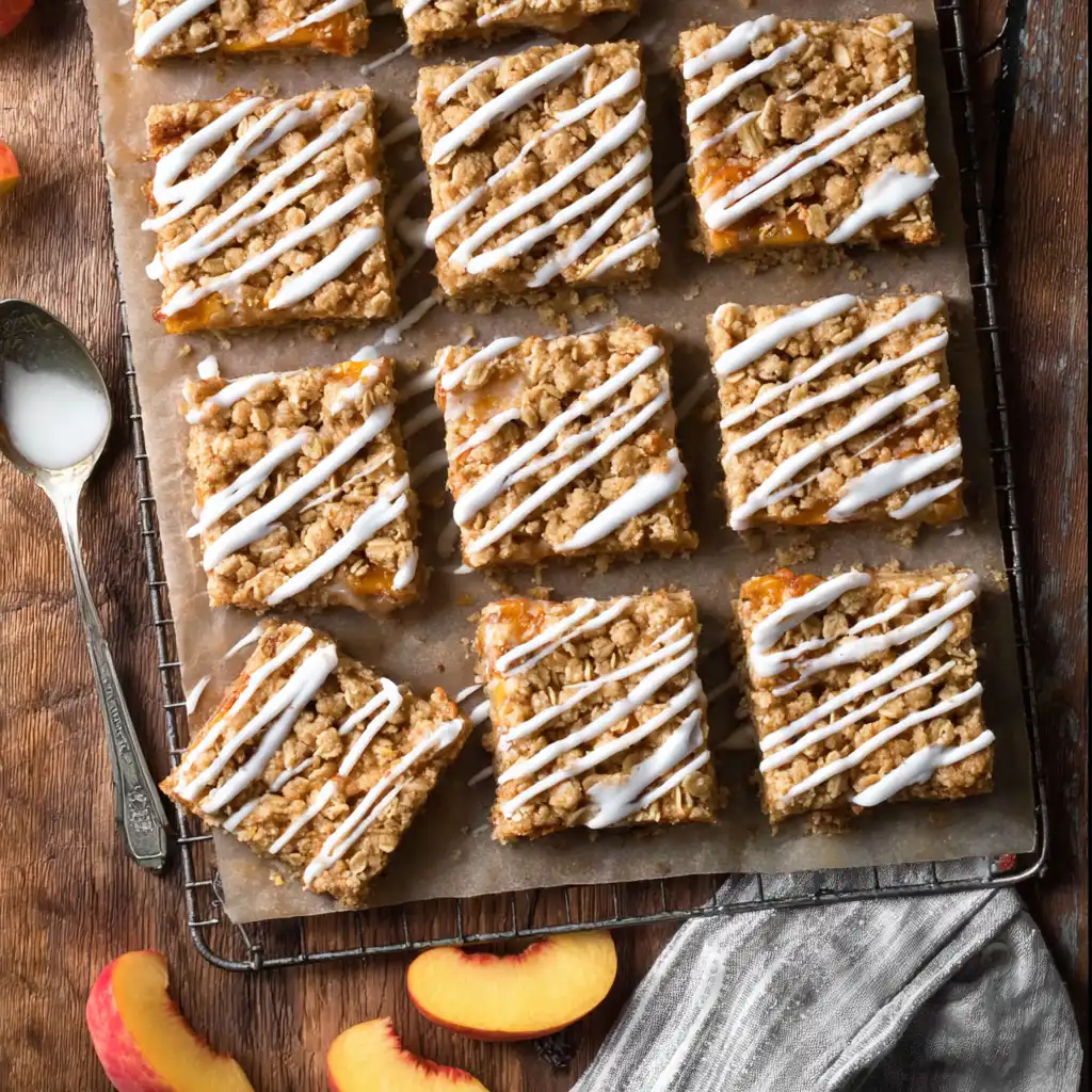 These bars capture everything we love about a deep-dish fruit pie but eliminate the stress of chilling pie dough or achieving the perfect lattice. Instead, we use a press-in shortbread base that provides a sturdy, buttery foundation for a heap of juicy, cinnamon-spiced peaches. Topped with a crunchy oat crumble and a silky vanilla glaze, these bars are the quintessential summer treat. Whether you are heading to a backyard barbecue, a picnic in the park, or simply want a sweet treat with your morning coffee, these bars are the answer.
