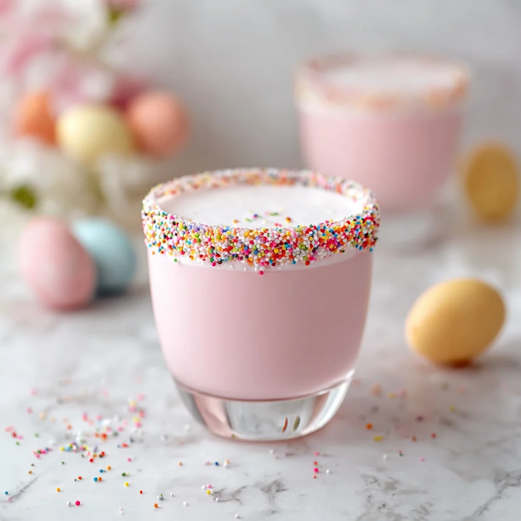 Let the frosting rim set in the freezer for 2 minutes before pouring the drink to ensure the sprinkles stay in place.