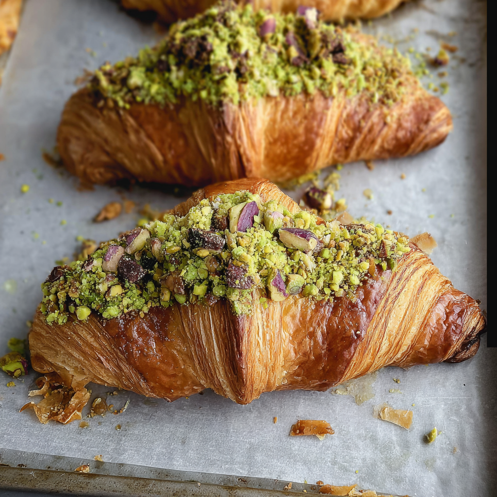 These Pistachio Croissants prove that viral food trends are popular for good reason—they’re absolutely delicious! While they might look intimidating, the actual process is straightforward and requires no special skills. The homemade pistachio filling is worlds better than anything store-bought, with a fresh, vibrant flavor and perfect texture. Using day-old croissants is actually an advantage, turning what might seem like a limitation into a feature. Whether you’re treating yourself to a special breakfast, impressing brunch guests, or exploring the viral food trend that’s taken over social media, these croissants deliver on every level. The combination of flaky, buttery pastry with rich, nutty pistachio cream is absolutely irresistible. Don’t be surprised when these become a regular request in your household—they’re that good. The best part? You can prep components ahead and just assemble and bake when you’re ready, making them perfect for entertaining. Trust me, once you bite into that crispy, flaky exterior and hit that creamy pistachio center, you’ll understand why the internet went crazy for these. Happy baking!