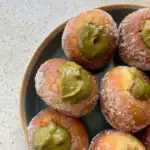 Ultra-soft pistachio cream filled donuts made using the tangzhong method for maximum fluffiness. These bakery-style fried donuts are rolled in sugar and filled generously with pistachio spread for an indulgent treat.