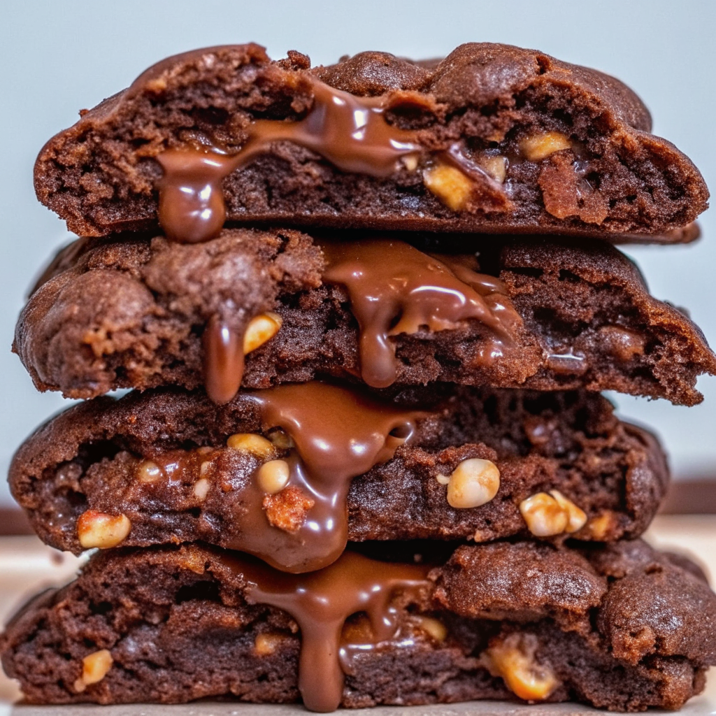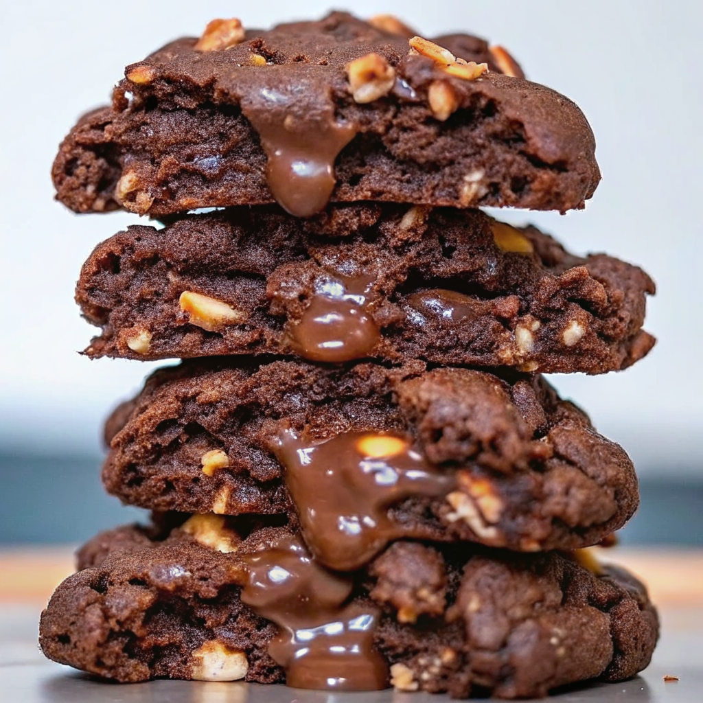 Nutella NYC Cookies — Indulge in 12 giant, soft-baked cookies filled with gooey Nutella centers, loaded with rich milk and dark chocolate chips, and crunchy roasted hazelnuts. Perfectly balanced cocoa dough wrapped around a luscious Nutella heart. Freeze, bake, and enjoy a delicious New York-style treat anytime!