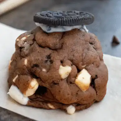 Half vanilla dough, half chocolate, studded with white chocolate chips and chopped Fun‑size Mars Bars, then crowned with melted white chocolate and a Mars Bar piece. They’re rich, indulgent, and perfect for sharing (or sneaking!).