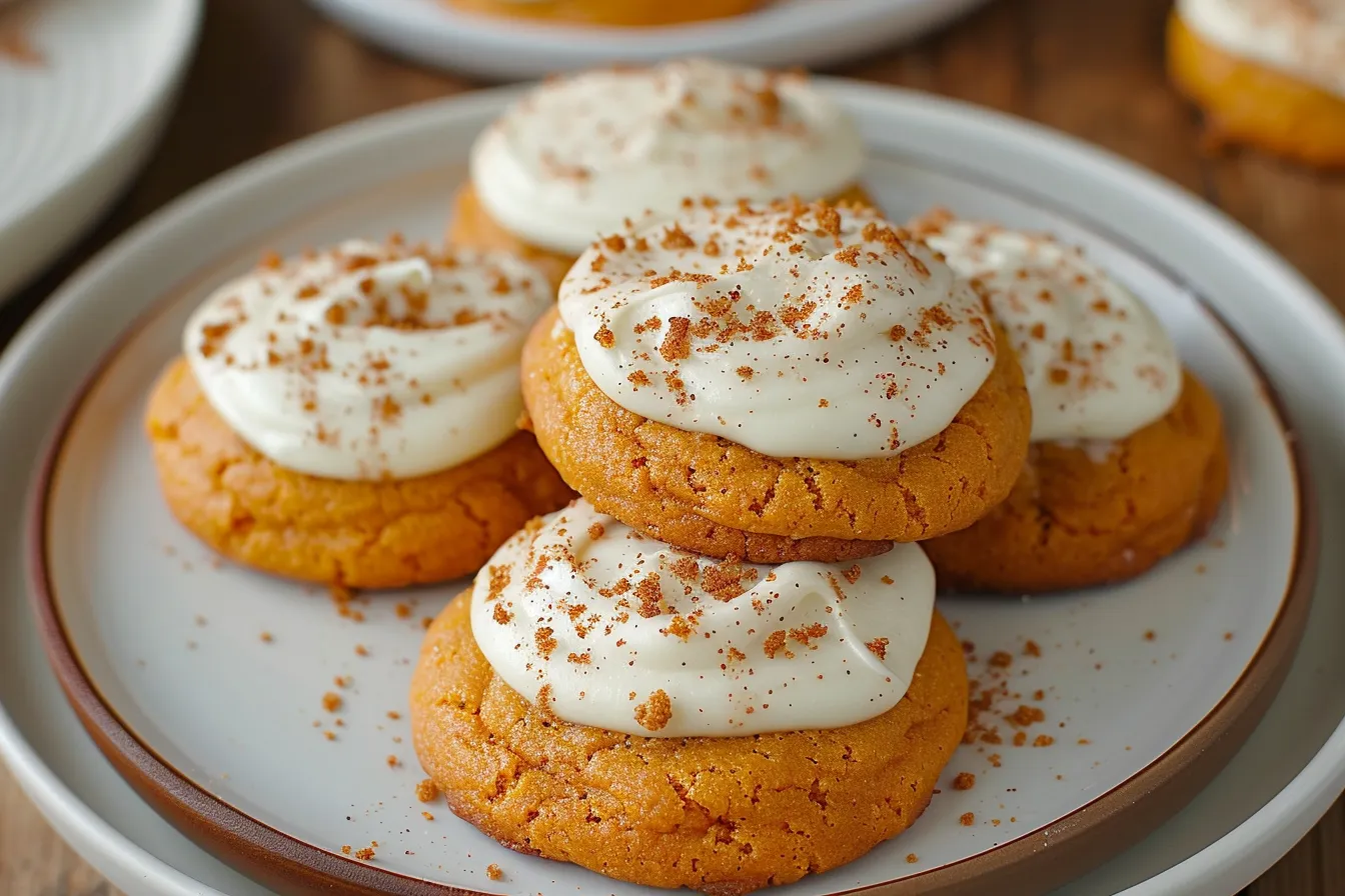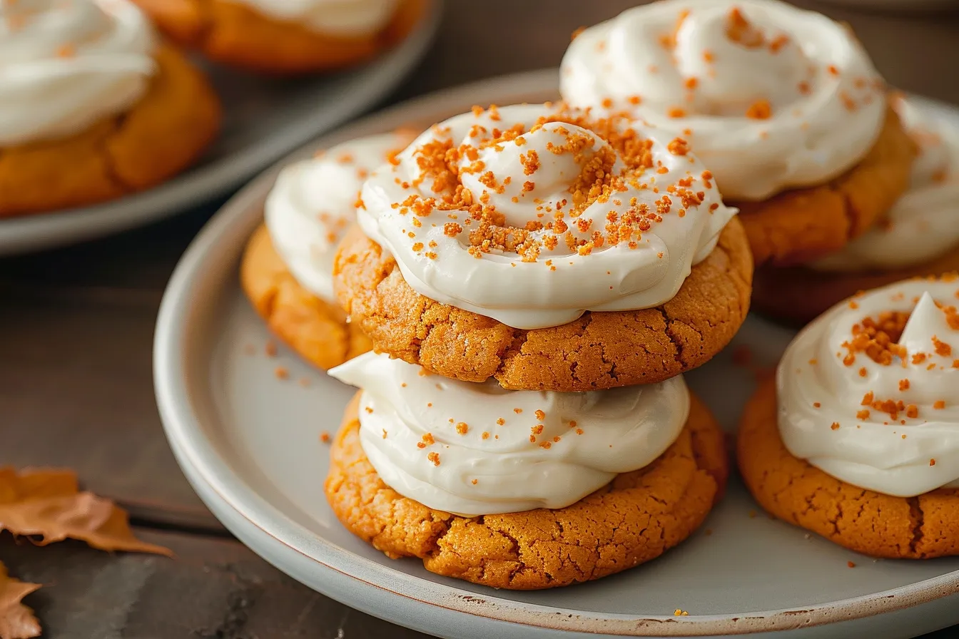 Soft pumpkin cookies cream cheese frosting fall perfection Easy recipe delightful flavor Bake these irresistible treats today 155 chars