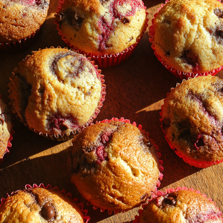 Substitution Tips: No fresh raspberries? Frozen work perfectly—don’t thaw them first or they’ll bleed too much into the batter, though some pink streaks are beautiful. For chocolate, you can use milk chocolate for sweeter muffins or roughly chop a dark chocolate bar for more rustic chunks. Want to reduce sugar? Cut the granulated sugar to ¾ cup—the raspberries and chocolate provide plenty of sweetness.