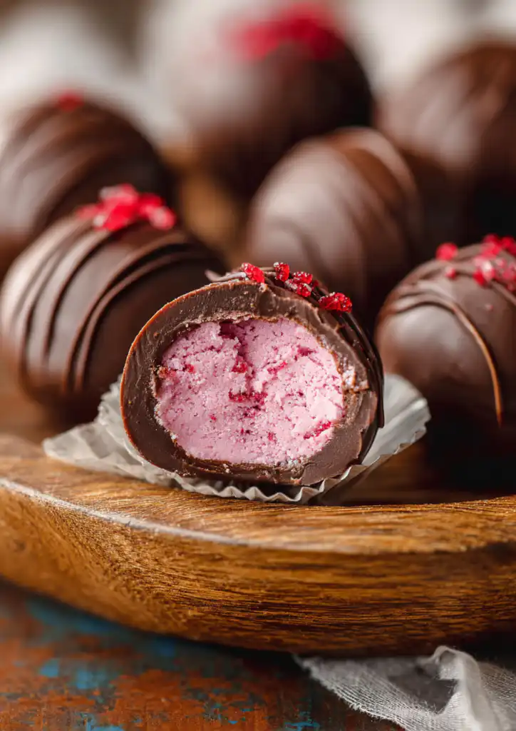 These truffles are rich, so a little goes a long way. Serve them on a clean, white marble slab to make the pink and dark chocolate colors pop. They pair exquisitely with a dry Champagne or a tart Prosecco, which cuts through the sugar of the white chocolate. For a non-alcoholic pairing, try a dark roast coffee or a floral hibiscus tea. They also make an incredible addition to a “dessert charcuterie” board alongside nuts, cheeses, and honey.