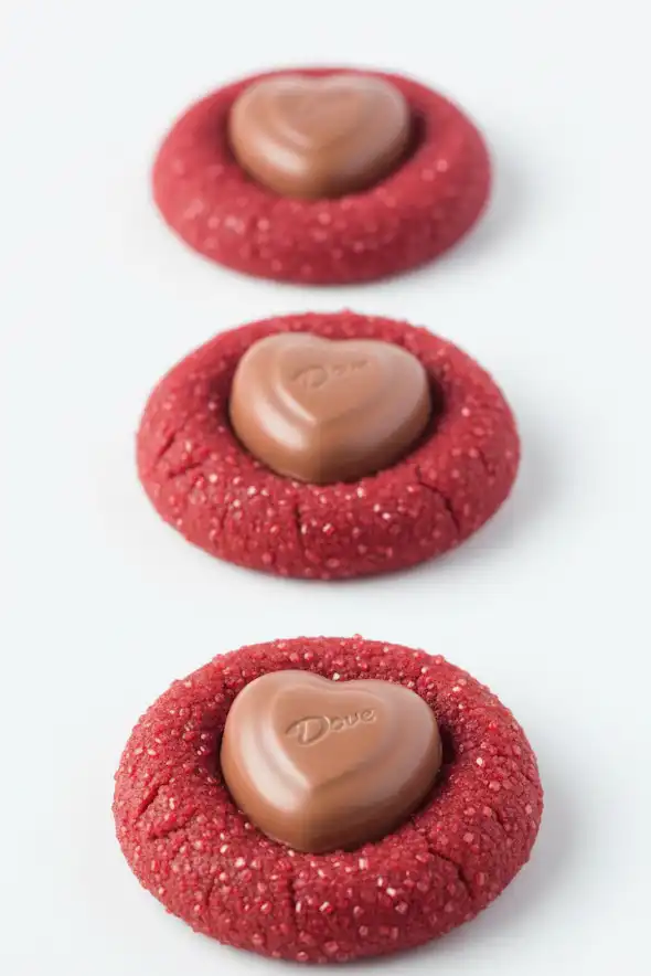 A festive and vibrant twist on the classic blossom cookie, these Red Velvet Chocolate Heart Cookies feature a soft, cocoa-infused base topped with a silky Dove chocolate heart. Perfect for Valentine’s Day, anniversaries, or any occasion that needs a little extra love.