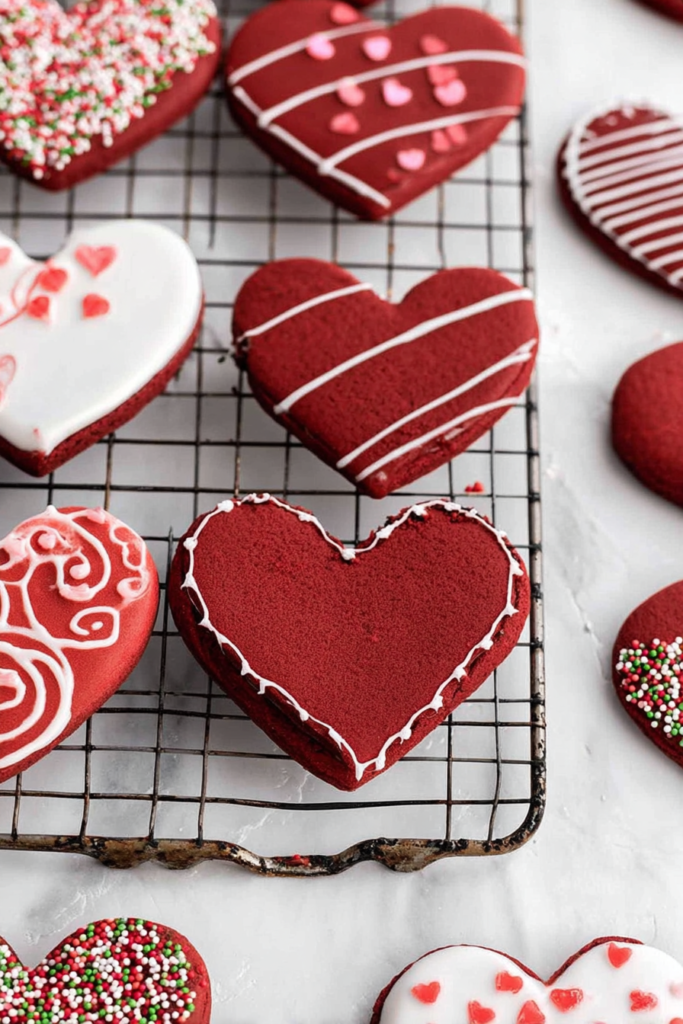 Whether you’re preparing Valentine cookie exchanges, creating decorated sugar cookies for holidays, looking for red velvet recipes beyond cake, or wanting cookies that maintain crisp edges and intricate shapes for detailed decorating, these cookies deliver consistent, impressive results. They yield approximately 60 cookies depending on cutter size, perfect for large batches and gift-giving.