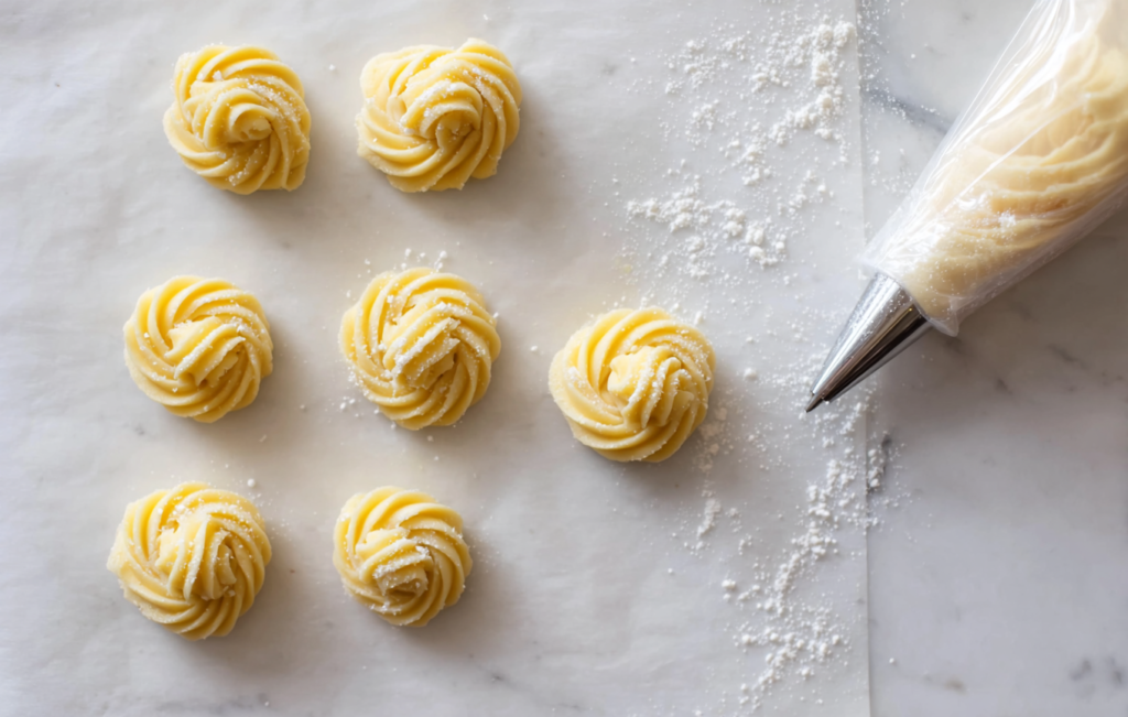 Pipe 2-inch rosettes onto prepared trays, spacing 2 inches apart