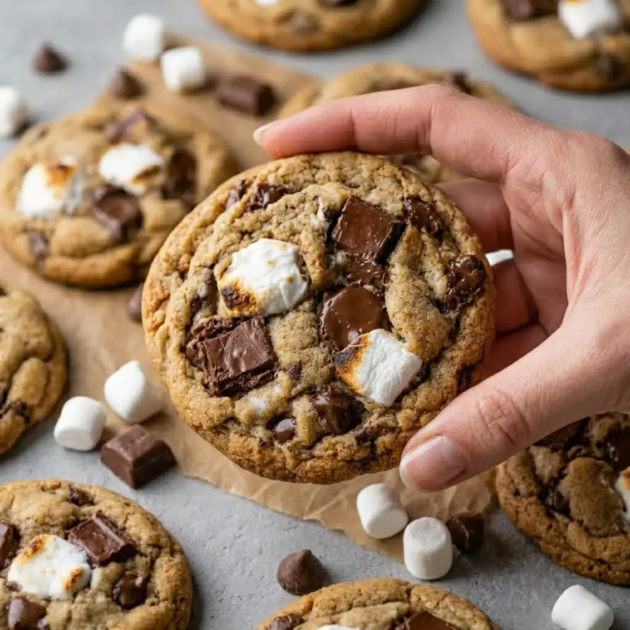 Conclusion: Soft & Chewy S’Mores Cookies deliver an irresistible combination of gooey, crunchy, and sweet textures. With careful layering of marshmallows, chocolate, and graham crackers, these cookies offer a comforting twist on a classic treat. Bake a batch today and savor the warm, melty magic of s’mores in every bite.