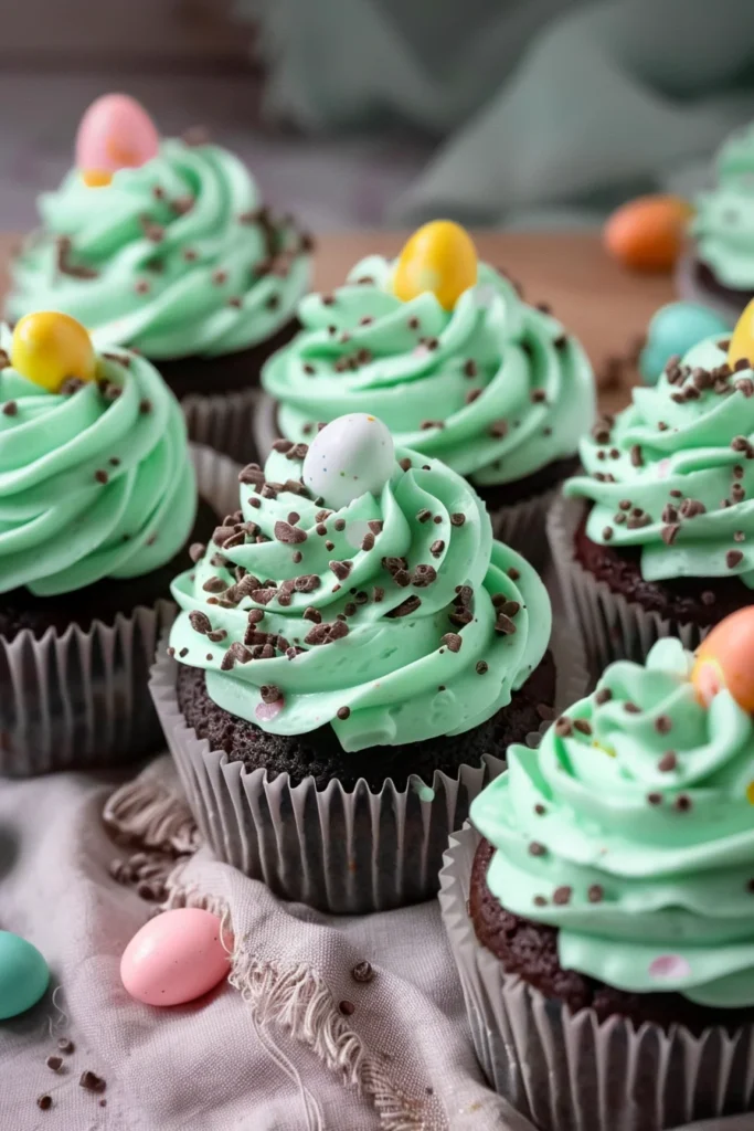 - Finishing: Place 2-3 mini chocolate eggs on top of each cupcake before the frosting sets.