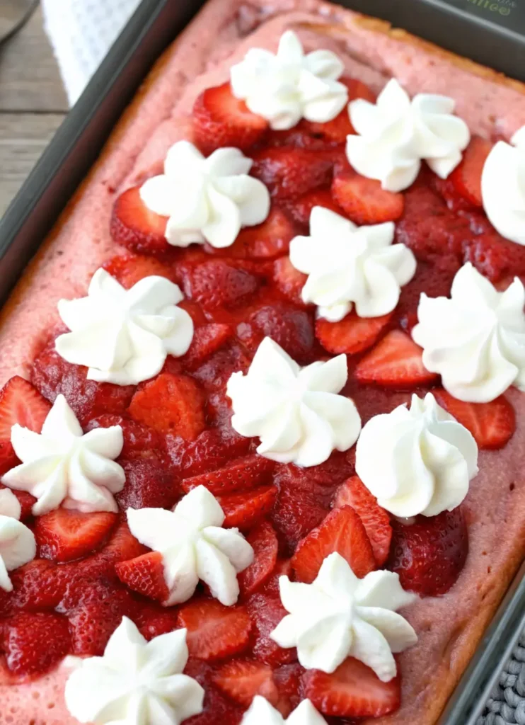 I’m Sophie, and this isn’t just another recipe on the internet – it’s a labor of love that I’ve personally tested over 9 times to ensure absolute perfection. Every pour, every poke, every layer has been refined to give you a cake that is incredibly moist, bursting with fresh strawberry flavor, and crowned with a cloud of fluffy whipped cream. It’s the kind of dessert that feels special without requiring hours in the kitchen, making it ideal for family gatherings, potlucks, or simply a sweet weeknight treat.