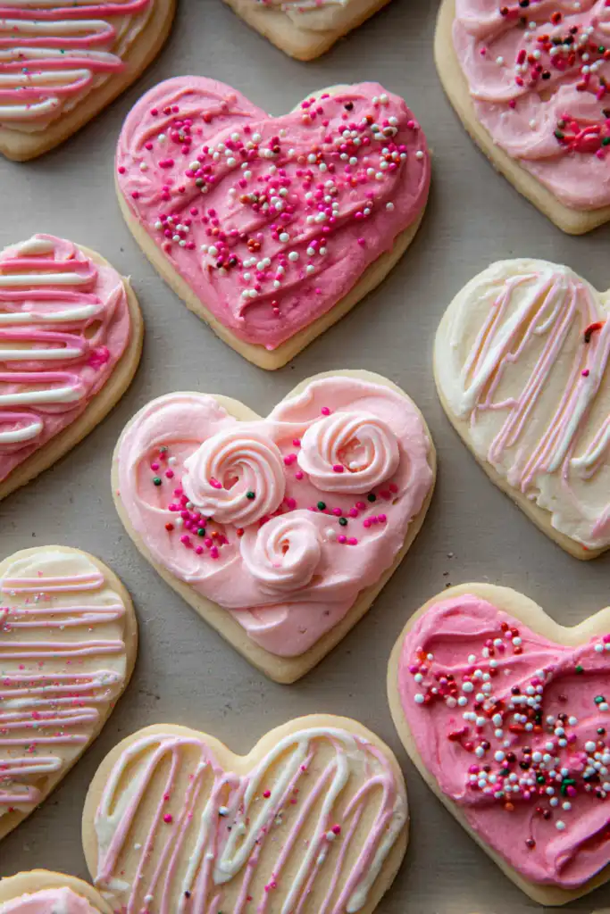 These Valentine Sugar Cookies are tender, buttery cut-out cookies with a delicate shortbread-like texture and subtle almond flavor. Made with cold butter for minimal spreading, they bake up pale and smooth—perfect for heart-shaped cookies decorated with buttercream or glossy glaze for Valentine’s Day.