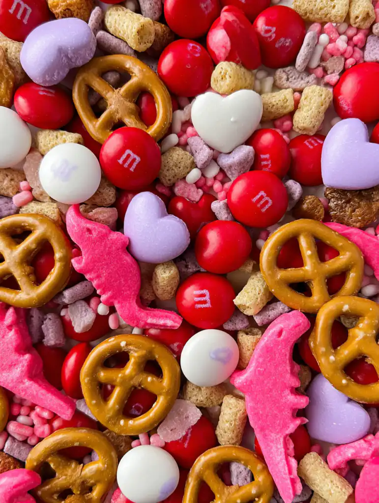 This Cupid’s Mix is a fantastic make-ahead recipe. You can prepare it up to one week in advance, provided you store it in a strictly airtight container. If exposed to air, the marshmallows will harden and the pretzels will lose their snap. Do not refrigerate or freeze this mix, as the moisture will ruin the texture of the cereal. For the best flavor, I recommend assembling it 24 to 48 hours before you plan to serve it.
