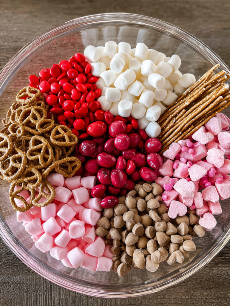 - M&M’s Cupid’s Mix (1 cup): These are the seasonal variety containing red, pink, and white chocolate candies. They provide the classic chocolate element everyone craves.